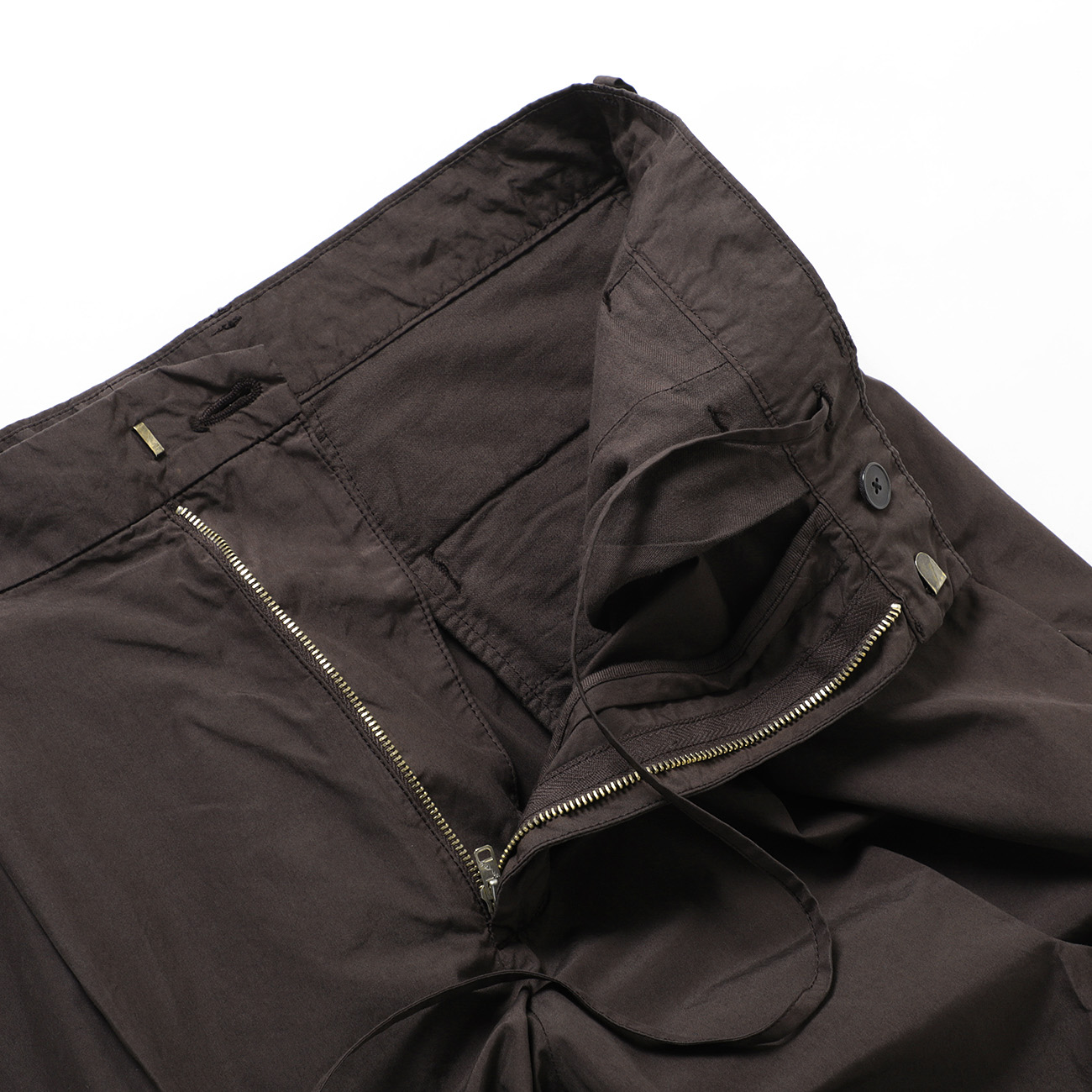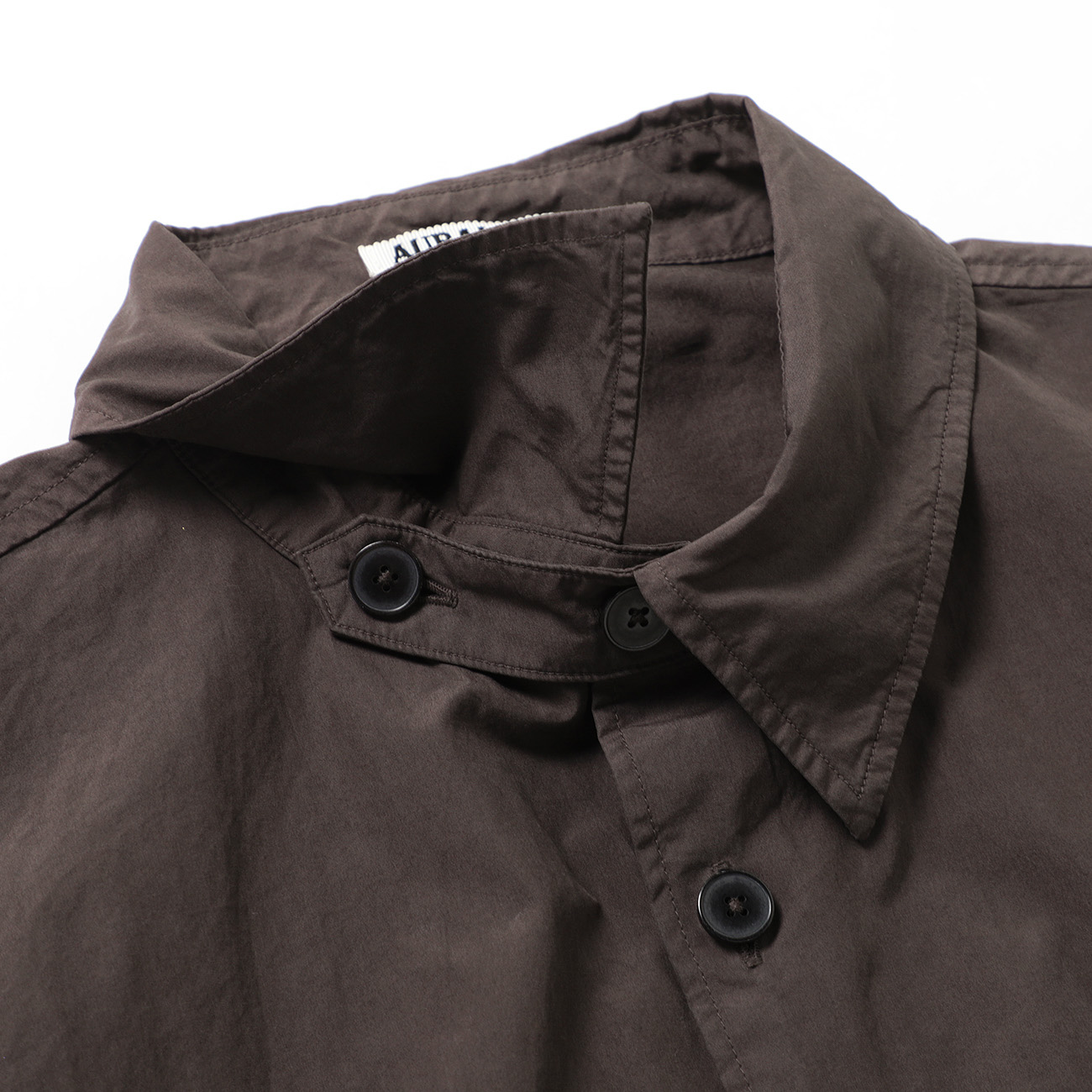 エジプト産の超長綿・フィンクスコットンを使用し、シャトル織機で丁寧に織り上げた高密度ウエザークロスのシャツと1タックのパンツ。やわらかな肌触りと、製品染めによる奥行きのある風合いが魅力の一着です。