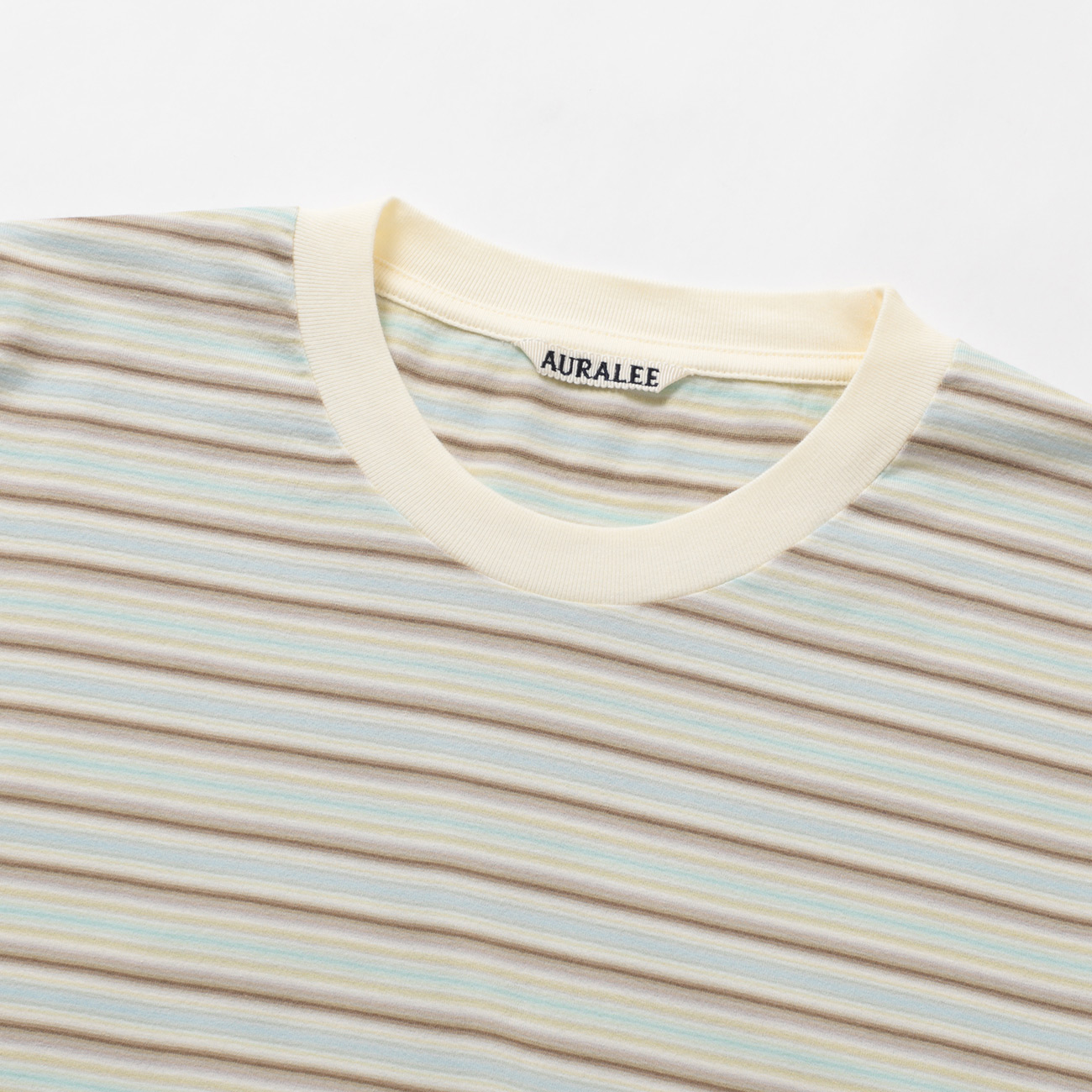 23色もの糸を巧みに組み合わせて編み上げたグラデーションボーダーTシャツ。カジュアルさと上品さを兼ね備えたボーダーTはオーラリーだけ。